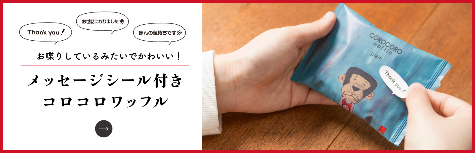退職、結婚式、ノベルティ、プチギフトにおすすめ♪ 【お世話になりました】メッセージシール付コロコロワッフル パック10袋セット 送料別 メール便 当店特別価格 ¥ 2,000 税込 お気に入りに登録する