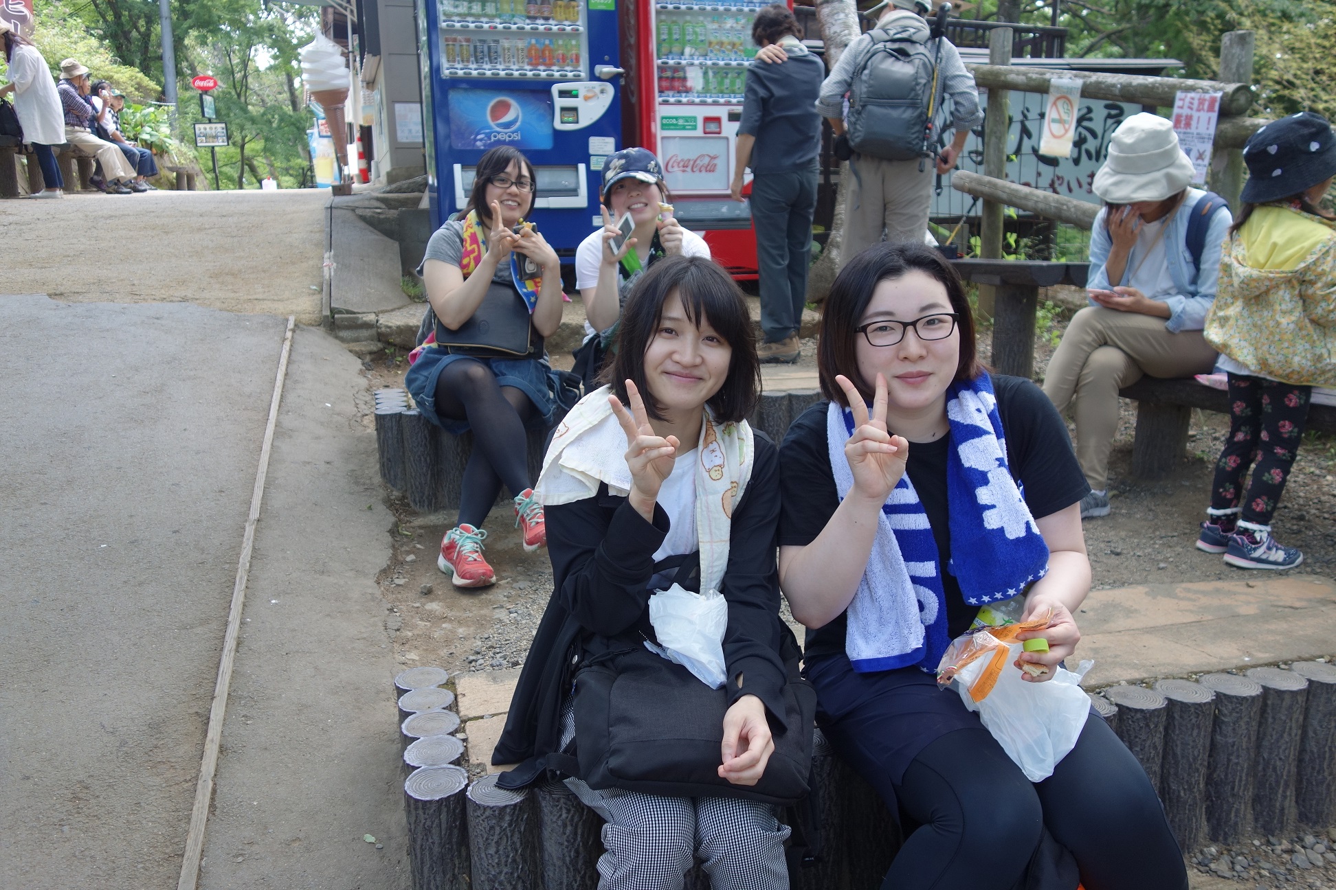 東京駅・グランスタ店での店頭撮影では店舗スタッフさんと一緒に。