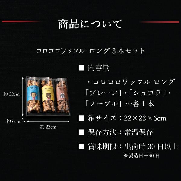 他の画像を見る 内祝い、お供え、各種ギフトにおすすめ! コロコロワッフル ロング3本セット 送料別 当店特別価格 ¥ 3,000 税込 販売期間 2025/03/31 17:00 〜 詳細を見る お気に入りに登録する
