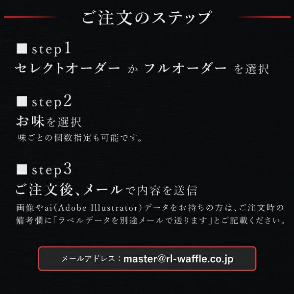 ※備考欄またはメールにて、ご注文後2日以内にラベルデータのご連絡がない場合は、通常パッケージの商品を発送いたします。