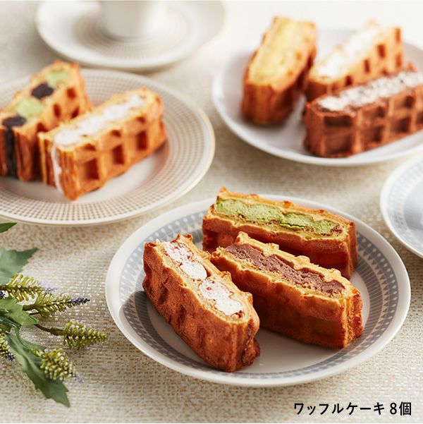 〇ワッフルケーキ:8個(計8種・各1個:ストロベリー、チョコ、抹茶、プレーン、つぶつぶストロベリー、抹茶と北海道あずき、もも、チョコフレーク) |