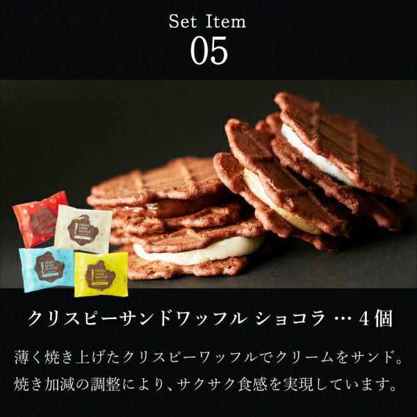 ○ ワッフルケーキ... 10個 ○ ブラウニーワッフル... 5個 ○ クリスピーサンドワッフルショコラ... 「ミルク」 「クッキー&チョコ」 「クッキー&バニラ」 「黒豆きなこ」 各1個 ○ コロコロワッフル パック... 「プレーン」「メープル」「ショコラ」「ストロベリー」 各1個 ○ プティワッフル... 「プレーン」「ショコラ」「抹茶」 各1個 |