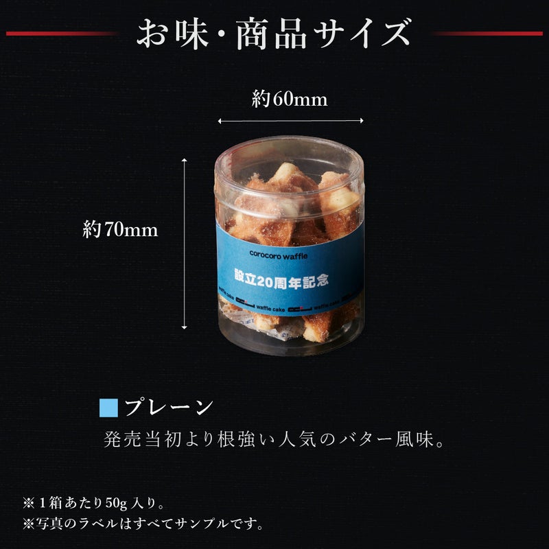 ひと口サイズの焼き菓子「コロコロワッフル」のラベルにお好きなメッセージやロゴなどを入れて、オリジナルのプレゼントに。