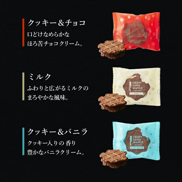 ○クリスピーサンドワッフル ショコラ「ミルク」「クッキー&チョコ」「クッキー&バニラ」各2個ずつ