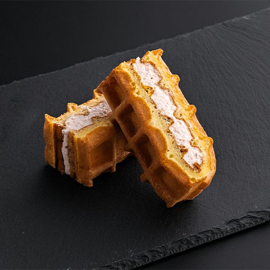 ふんわりと焼き上げるこだわりのワッフル生地で、フルーツやクリームをサンドしたエール・エルのベストセラー。