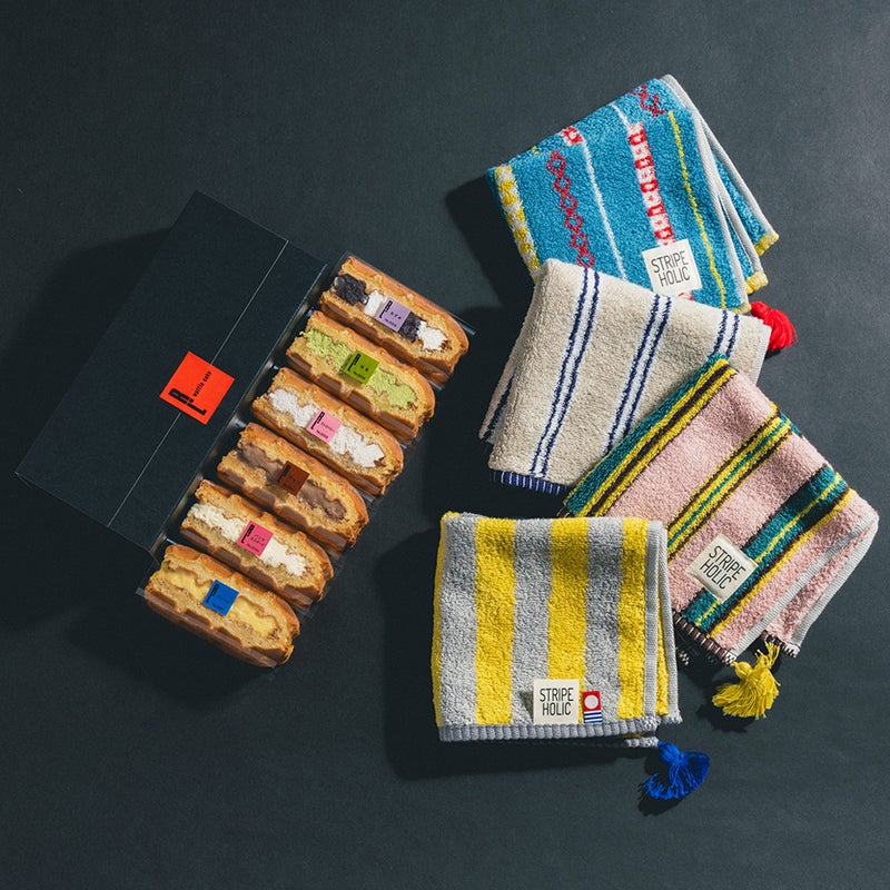 ◆タッセル付今治タオルハンカチ(4カラーのうち1点) ◆ワッフルケーキ6個(プレーン、バニラカスタード、抹茶、ストロベリー、チョコ、あずき 各1個ずつ) |