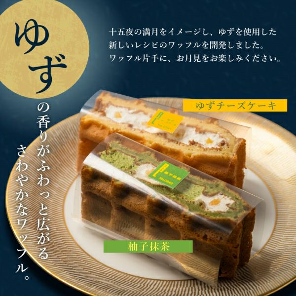 抹茶にほうじ茶、柚子や粒あんなど和を感じる味わいの「お月見ワッフル」は彩りも美しく、おもてなしや手土産にもおすすめです。