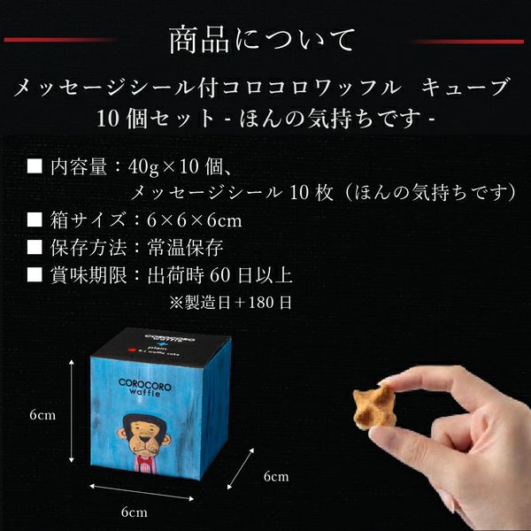 他の画像を見る 退職、結婚式、ノベルティ、プチギフトにおすすめ♪ 【ほんの気持ちです】メッセージシール付コロコロワッフル キューブ10個セット 送料込 当店特別価格 ¥ 5,000 税込 販売期間 2025/09/23 0:00 〜 カートに入れる お気に入りに登録する