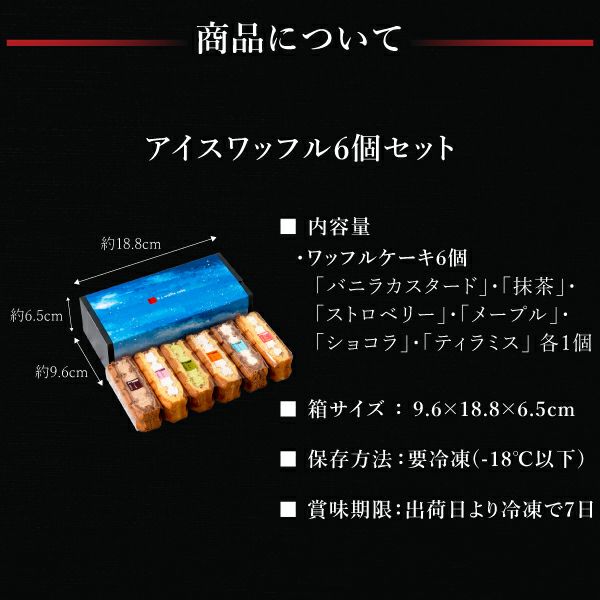 作りたてのおいしさを冷凍でお届けするワッフルケーキ。フローズンケーキ感覚でそのまま味わう、暑い時期ならではの楽しみ方ができる6種セットです。