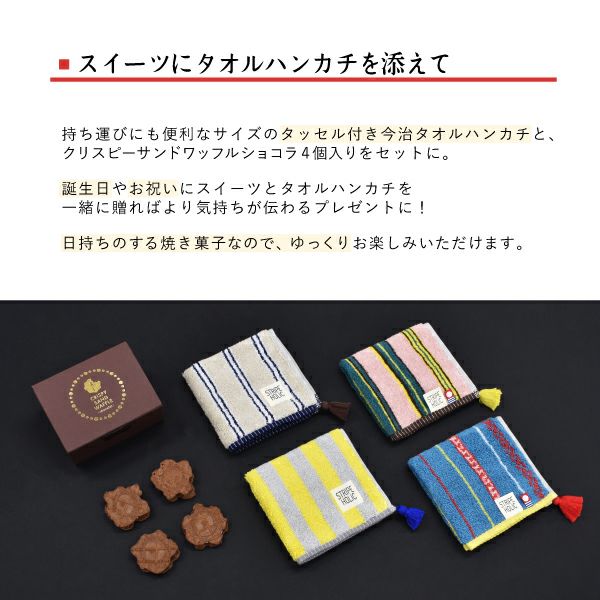 他の画像を見る 父の日におすすめ♪ タッセル付今治タオルハンカチ&クリスピーサンドワッフルセット 送料込 当店特別価格 ¥ 2,420 税込 販売期間 2023/05/29 19:00 〜 詳細を見る お気に入りに登録する