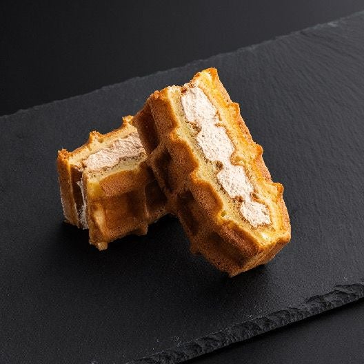 ふんわりと焼き上げるこだわりのワッフル生地で、フルーツやクリームをサンドしたエール・エルのベストセラー。