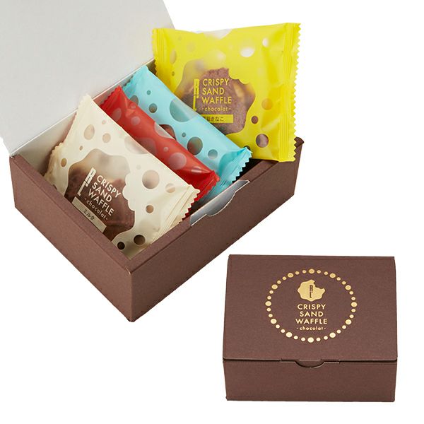 〇クリスピーサンドワッフルショコラ4個(各1個:ミルク、クッキー&チョコ、クッキー&バニラ、黒豆きなこ) 〇ブラウニーワッフル5個(A,Bからいずれか各1個) ([A]プレーン、キャラメル、ラムレーズン、コーヒー、抹茶) ([B]黒ごま、ショコラ、バナナ、オレンジ、マロン) |