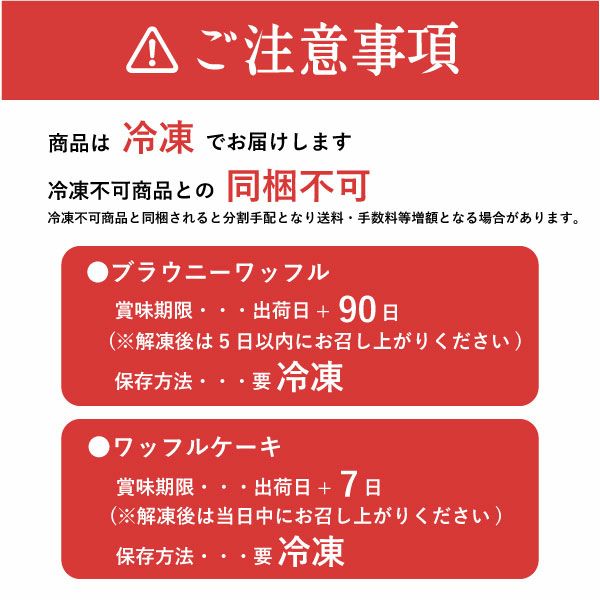 〇ブラウニーワッフル:要冷凍(-18℃以下)(解凍目安…冷蔵庫で約3時間) |