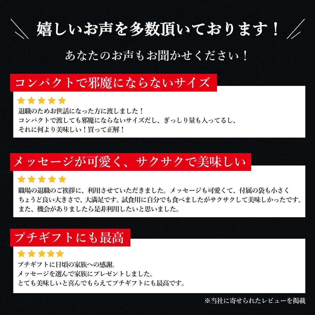 他の画像を見る 【プチギフト】退職の挨拶やお礼に選べるメッセージ付き コロコロワッフル プチ メッセージ付き 送料別 ポイントUP! 当店特別価格 ¥ 500 税込 カートに入れる お気に入りに登録する 4.50 (16)
